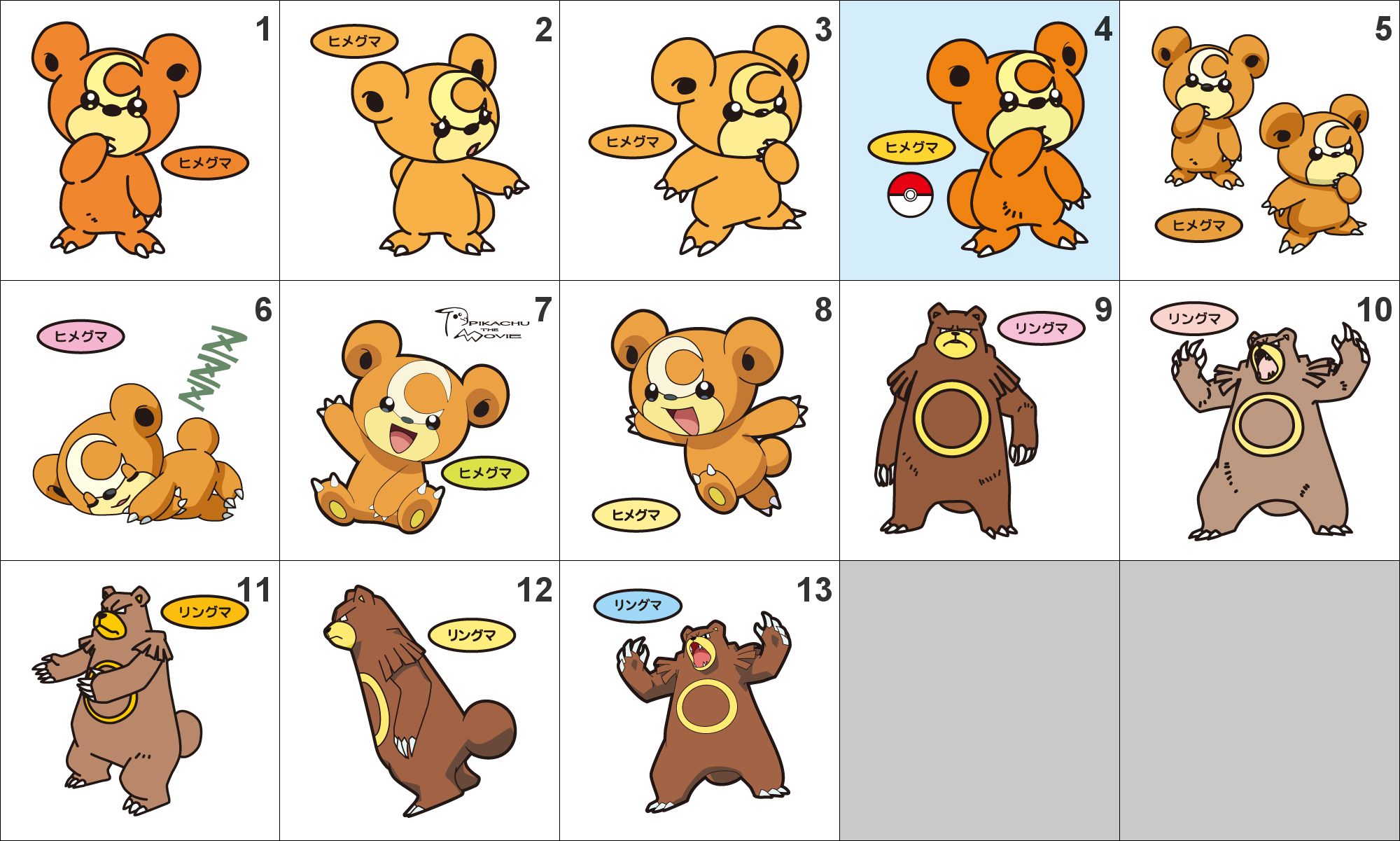 216, 217 Teddiursa, Ursaring Pan Stickers Pokemon