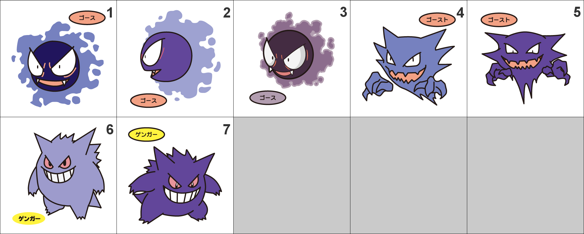 092, 093, 094 Gastly, Haunter, Gengar Pan Stickers Pokemon