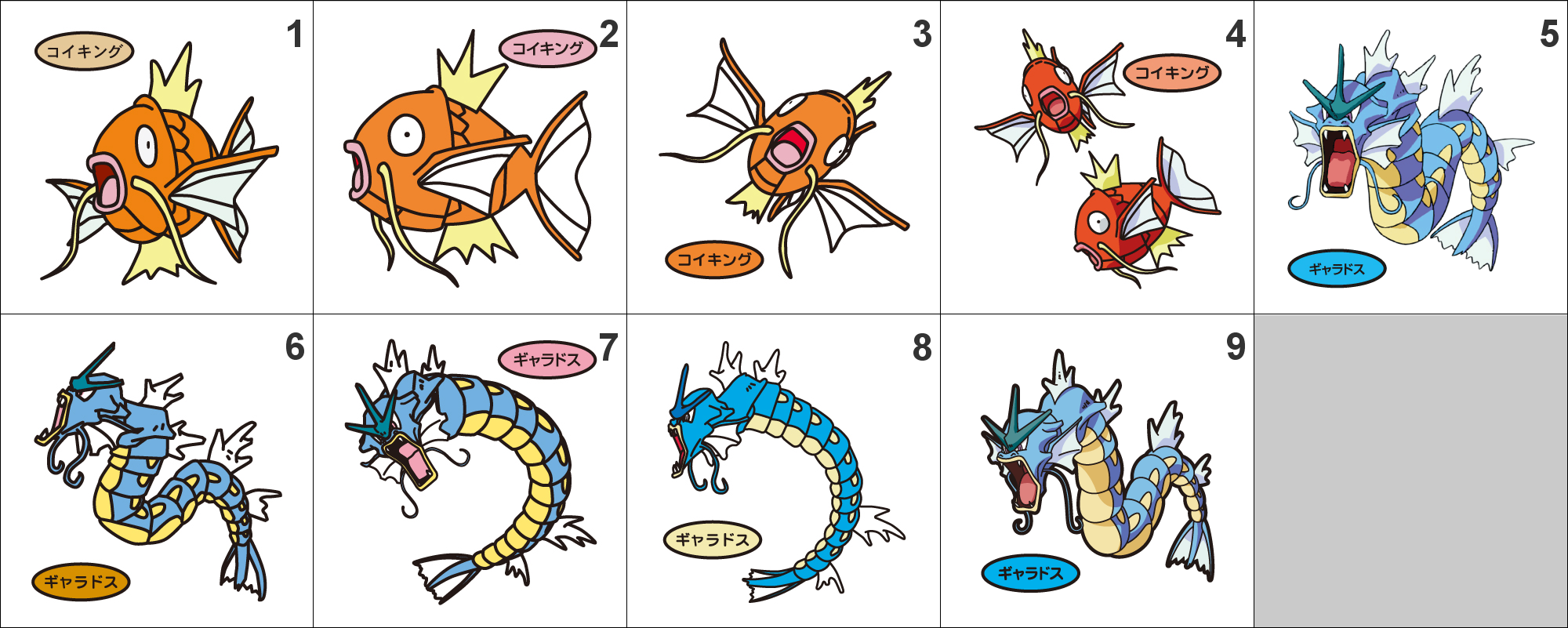129, 130 Magikarp, Gyarados Pan Stickers Pokemon