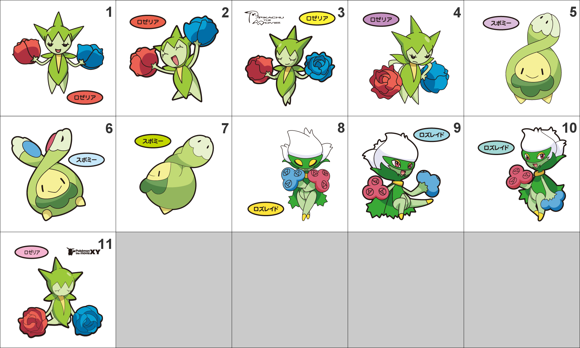 315, 406, 407 Roselia, Budew, Roserade Pan Stickers Pokemon
