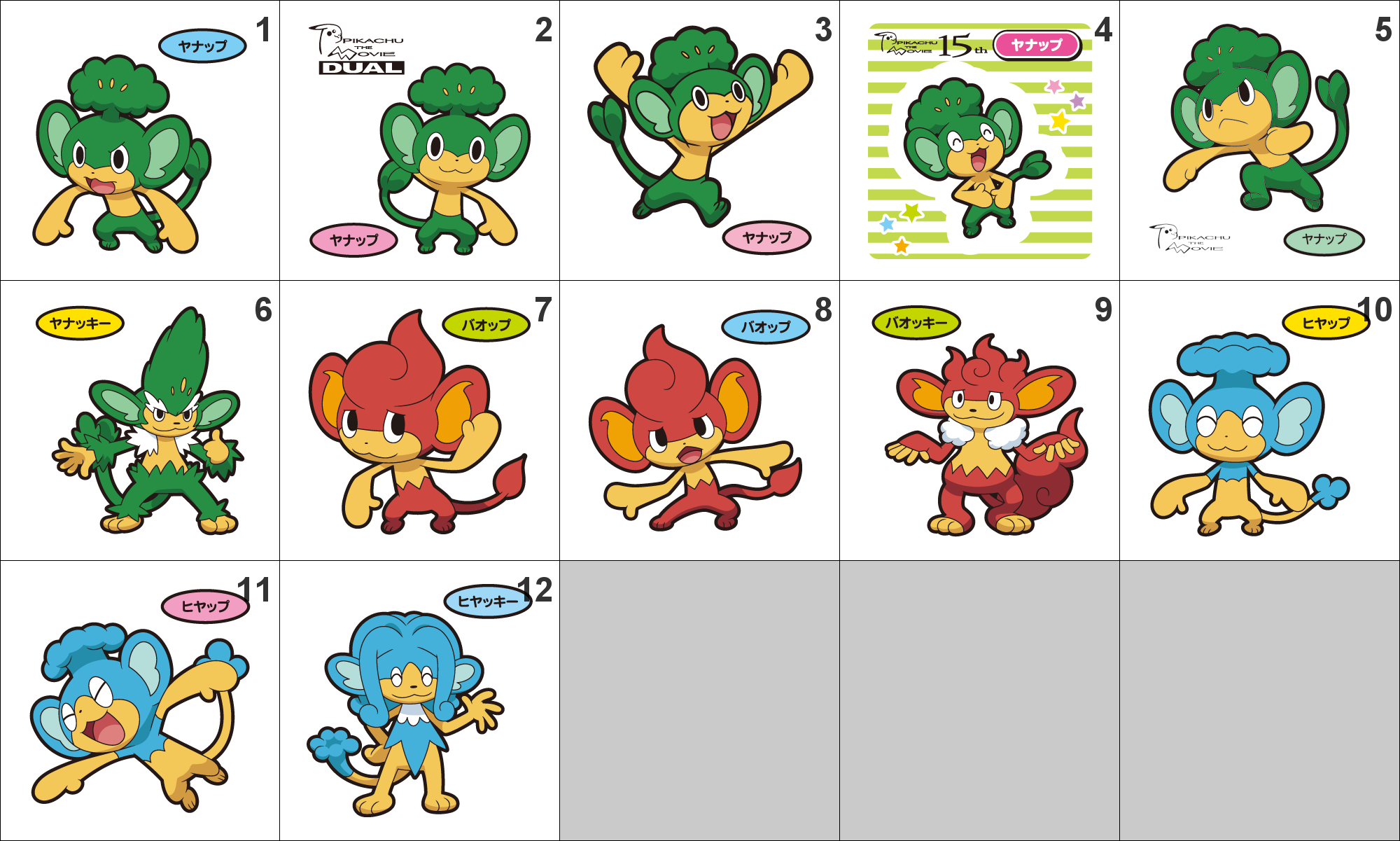 511, 512, 513, 514, 515, 516 Pansage, Simisage, Pansear, Simisear, Panpour, Simipour Pan Stickers Pokemon